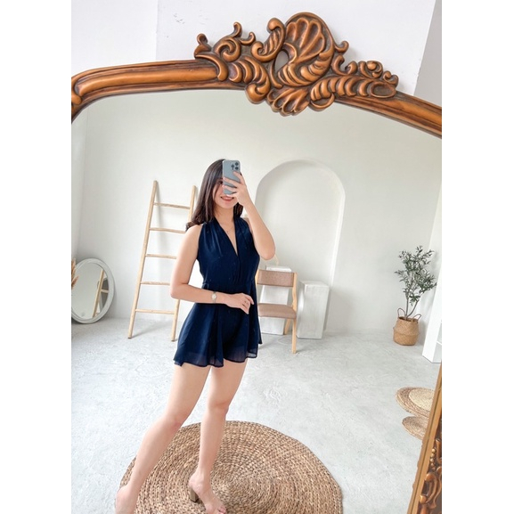 Fashion Lu Store Raya Jumpsuit V-Neck Polos Pendek Chiffon Resleting