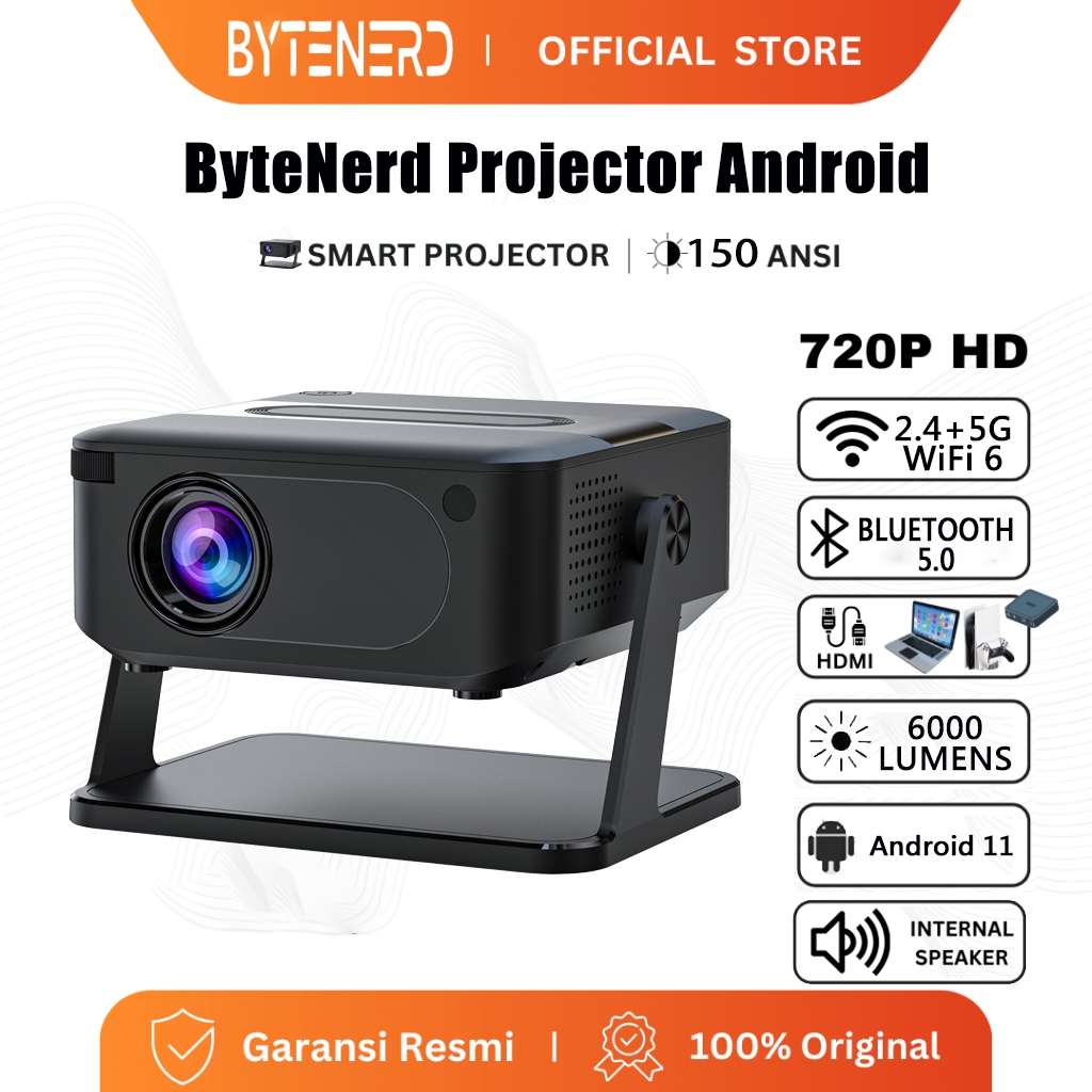Bytenerd HA109 Proyektor Android TV 1080P Smart Projector Android 11.0 Wifi 6 Bluetooth 5.0 Home Theater Proyektor Mini