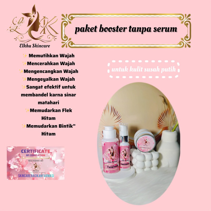 Paket Booster Elkha Skincare tanpa serum ( Untuk Kulit Susah Putih Memutihkan Dan Meglowingkan )