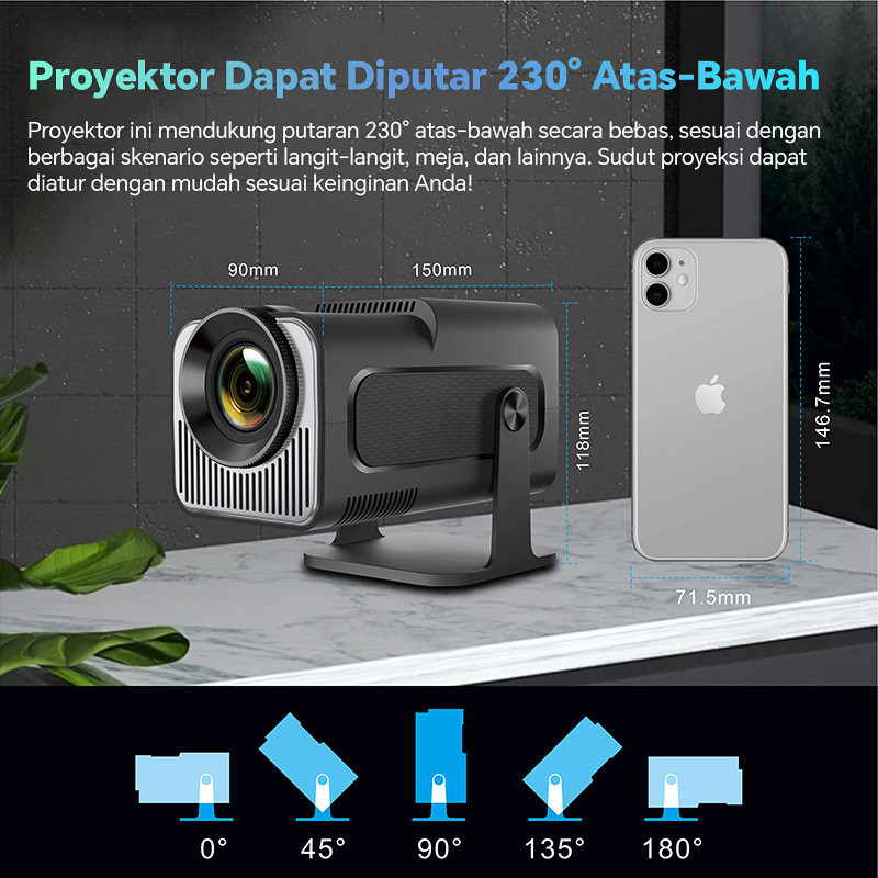 mall inline badgeMISENI HY320 Mini Smart Proyektor Android 13.0 4k full hd 2G RAM+16G ROM Dual Band 2.4g&5g 10000 Lumens