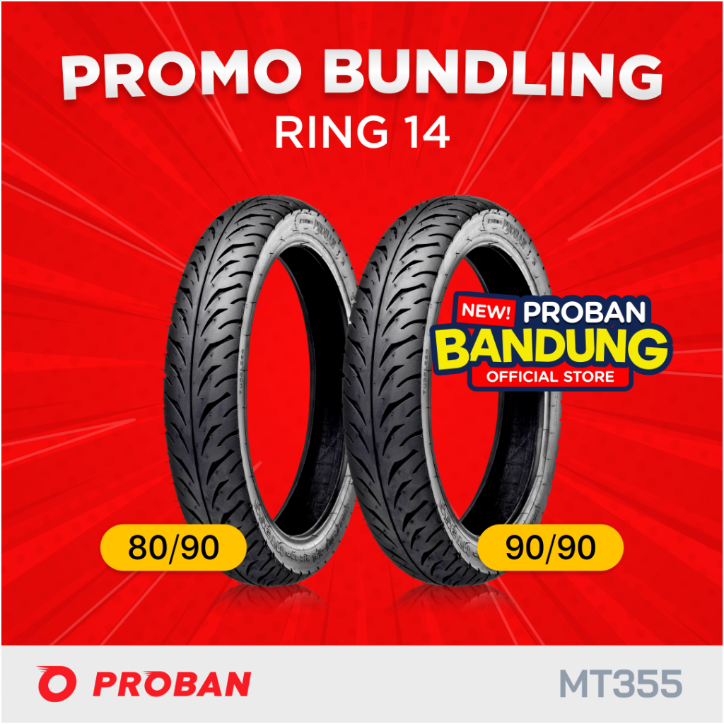 PAKET BUNDLE BAN DEPAN BELAKANG SEPASANG RING 14 BAN MOTOR TUBELESS PROBAN 80/90-14 & PROBAN 90/90-14