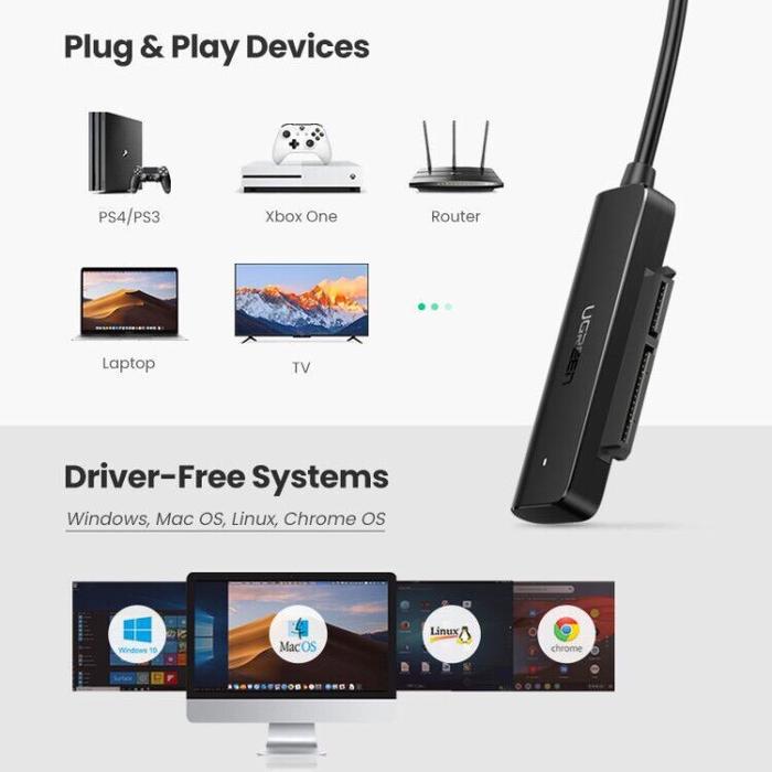 UGREEN KABEL CONVERTER USB 3.0 TO SATA 2.5INCH SSD HDD HARDDISK PS4 TV - BLACK - 50CM