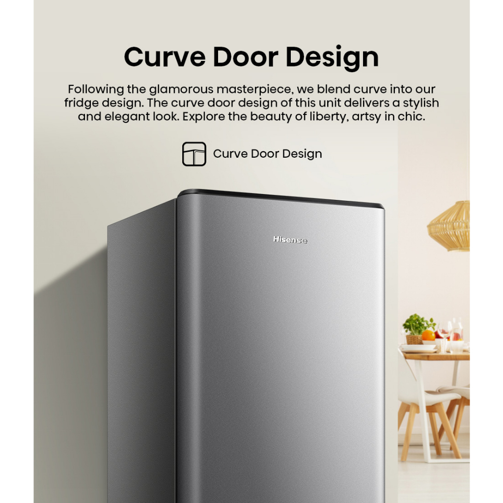 Hisense Kulkas RR195D4IGN Refrigerator Mini Bar Kapasitas 157L 1 Warna Silver Pintu Desain Unik dan Bergaya Ruang Pendin