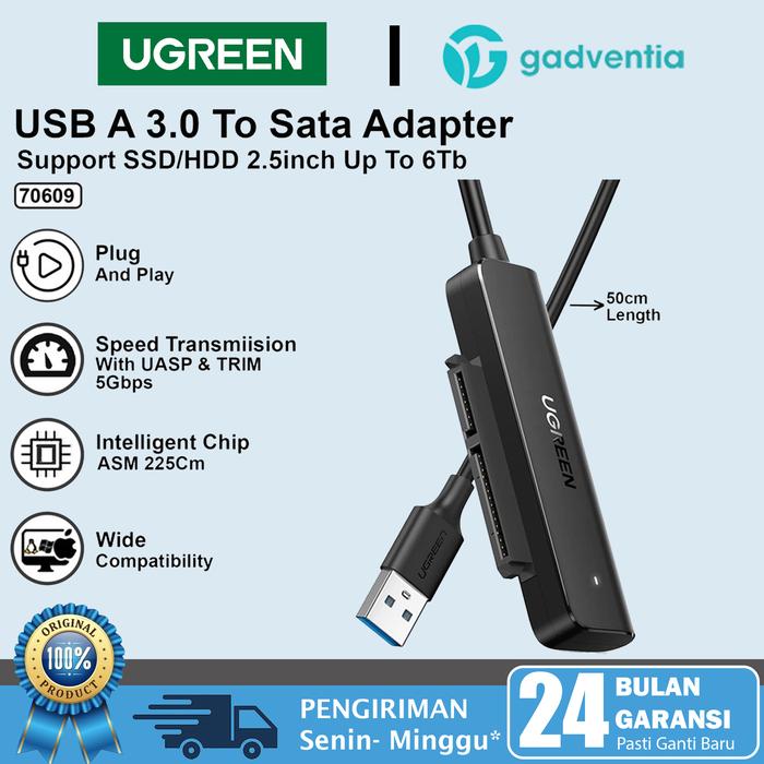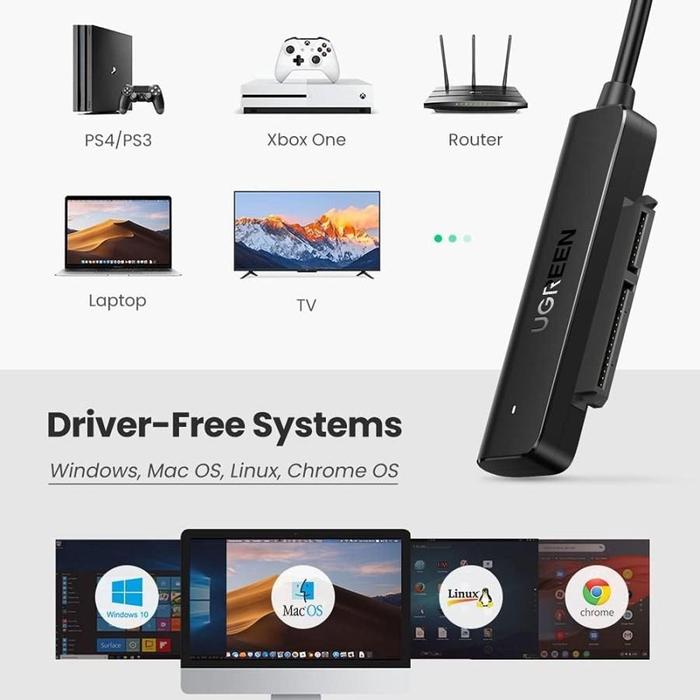 UGREEN KABEL ADAPTER USB 3.0 TO SATA 2.5" UP TO 6TB 10TB DATA TRANSFER HARD DRIVE CONVERTER HDD SSD 70609 UNTUK KOMPUTER PC PS4 XBOX - 70609 USB 3.0