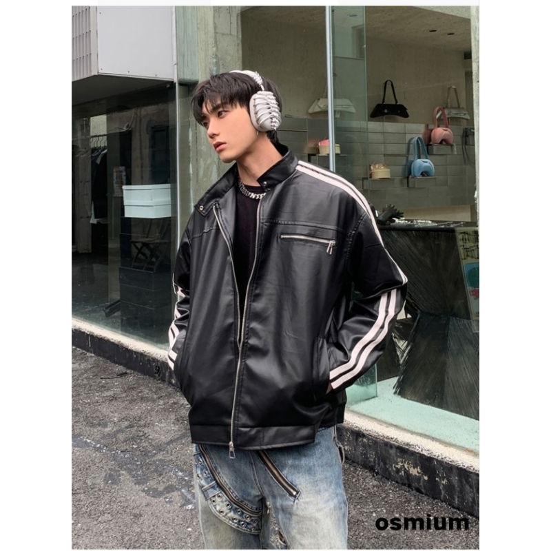 Jaket kulit UNISEX strip new casual pria dan wanita by Queen's leather
