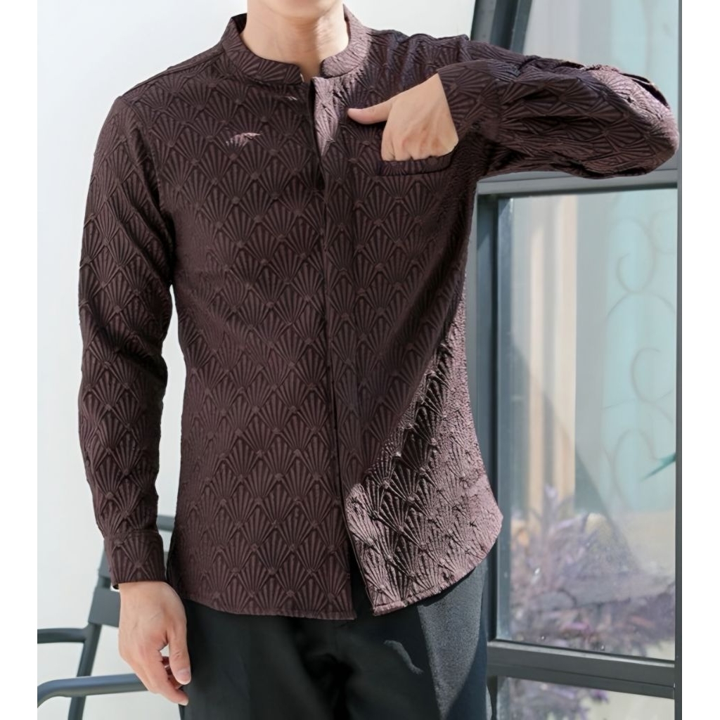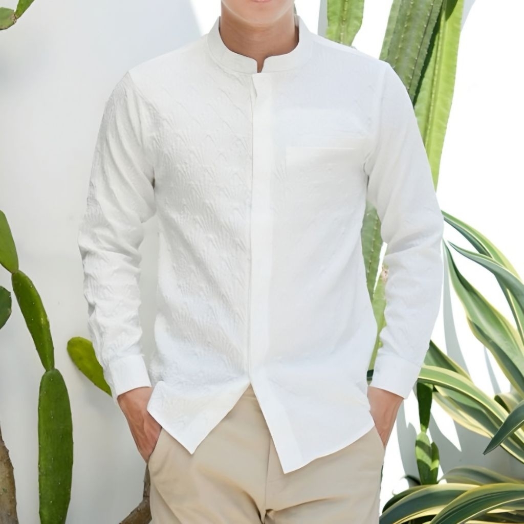 Kemeja Lengan Panjang Premium Jaquar Embos/Kemeja Pakaian Muslim Pria