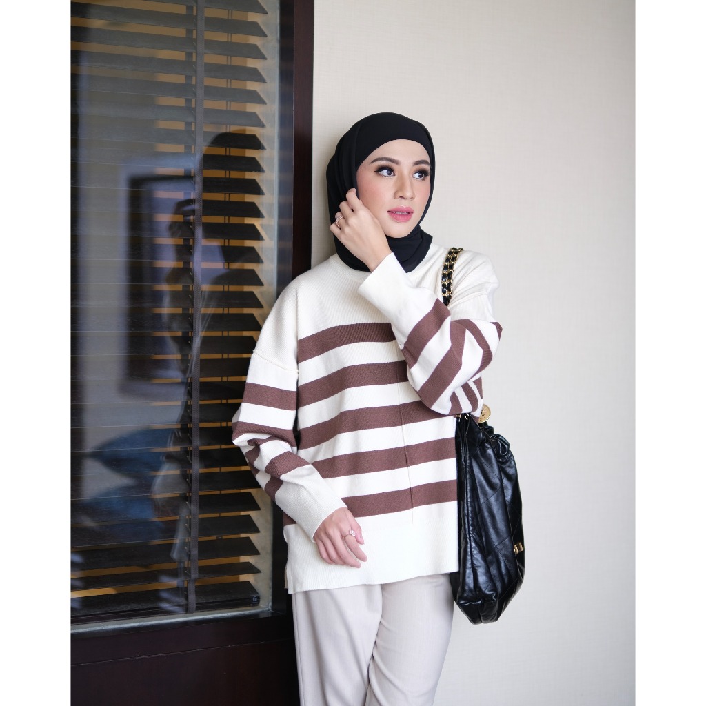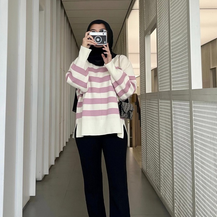 GONEGANI - Sweater Wanita Stripe Bahan Tebal Diora Sweater