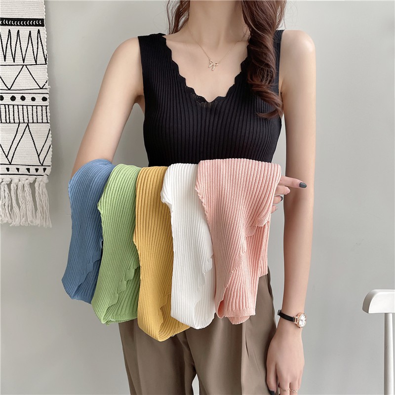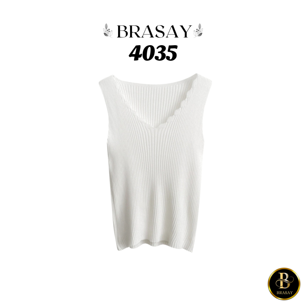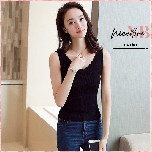 Fashion Lu Store Brasay Tank Top Wanita Rompi Rajut Tanpa Lengan Model V-Neck Gaya Korea 4035