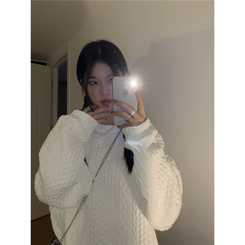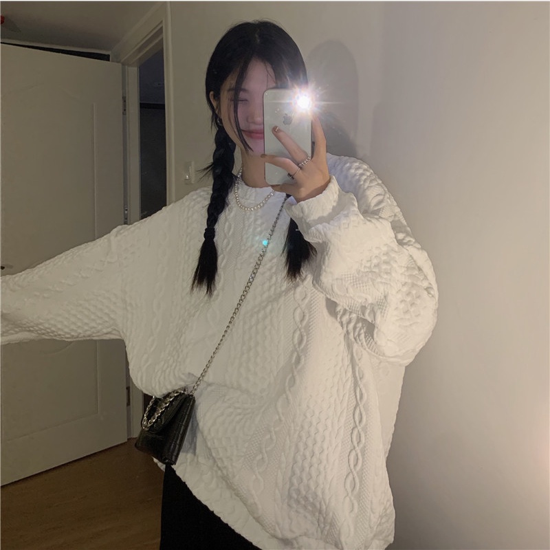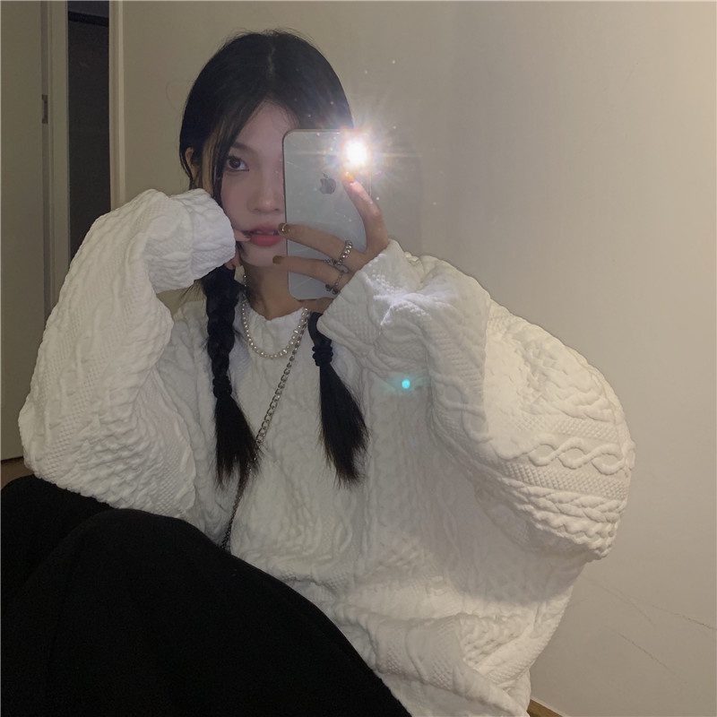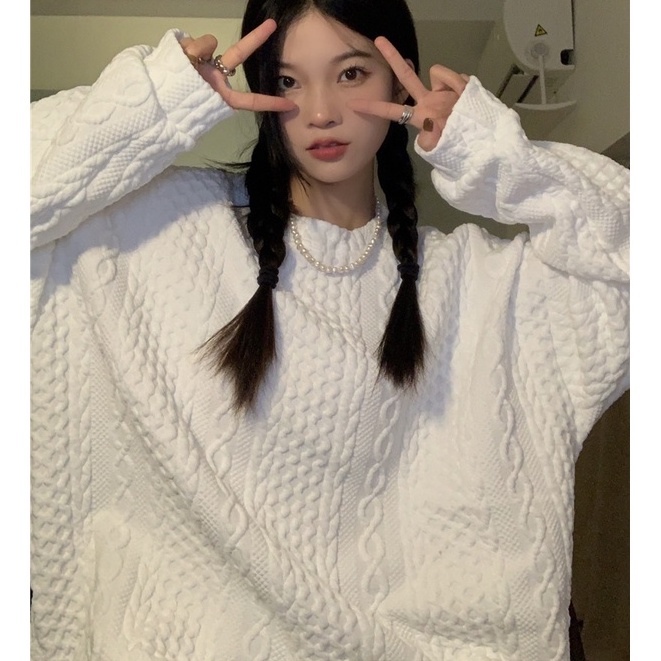 sweter wanita sweater oversize putih retro wanita korean style atasan baju wanita kekinian