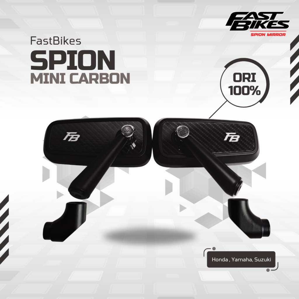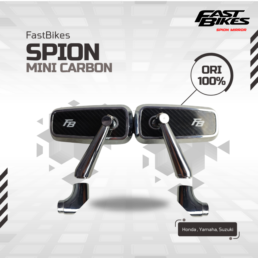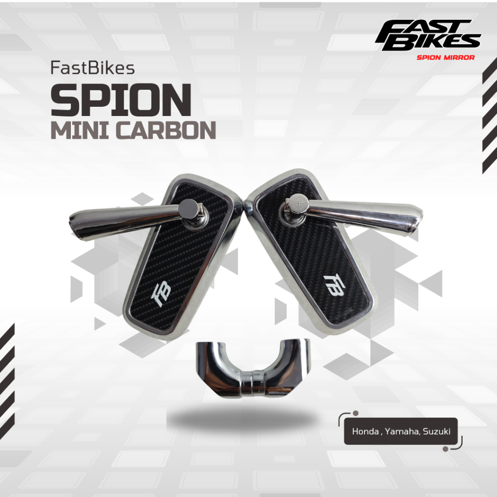 FASTBIKES Spion Variasi Model Persegi Chrome Hitam Motif Carbon Full CNC Universal