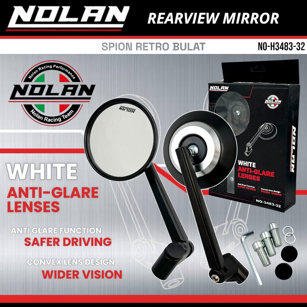 NOLAN Spion Retro Bulat H3483-32 Kaca Putih Bahan Full Aluminium Alloy Universal Motor