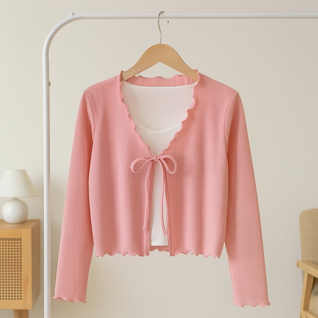 Fashion Lu Store Naluna Studio Cropped Cardigan Atasan Wanita Lengan Panjang Knit