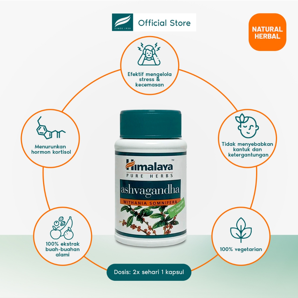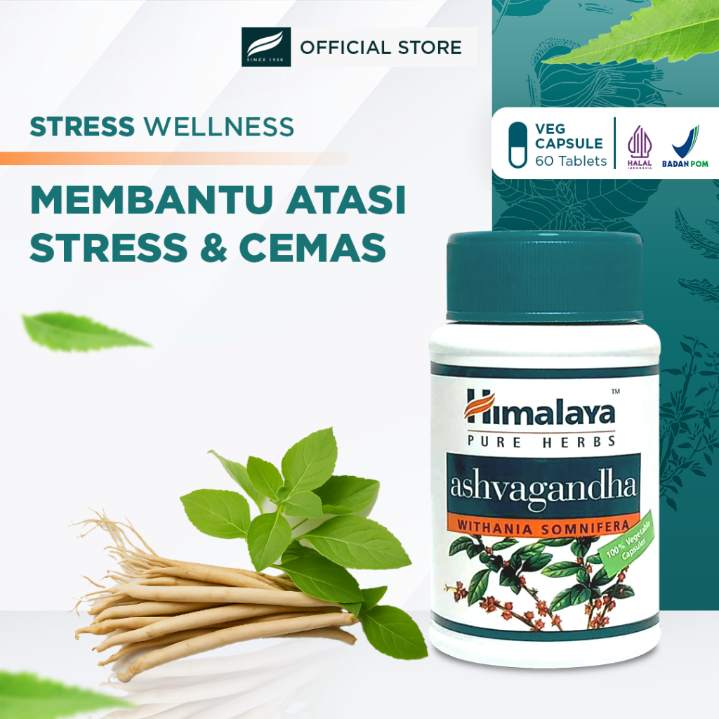 Himalaya Ashvagandha isi 60 | Supplement Herbal Anti Stress dan Anxiety | Ashwagandha Menenangkan Pikiran & Antidepresan