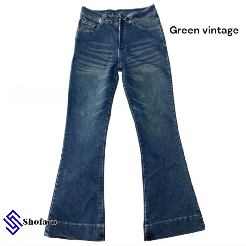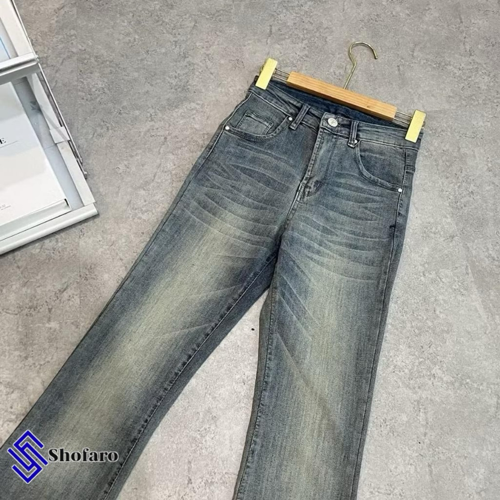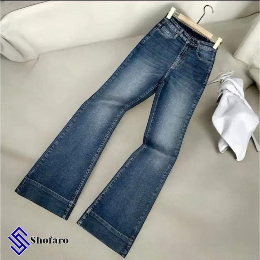 CELANA JEANS CUTBRAY Shofaro-Highwaist Cutbray Jeans Celana Flare Panjang Stetch Wanita Retro Vintage Lipat Bawah
