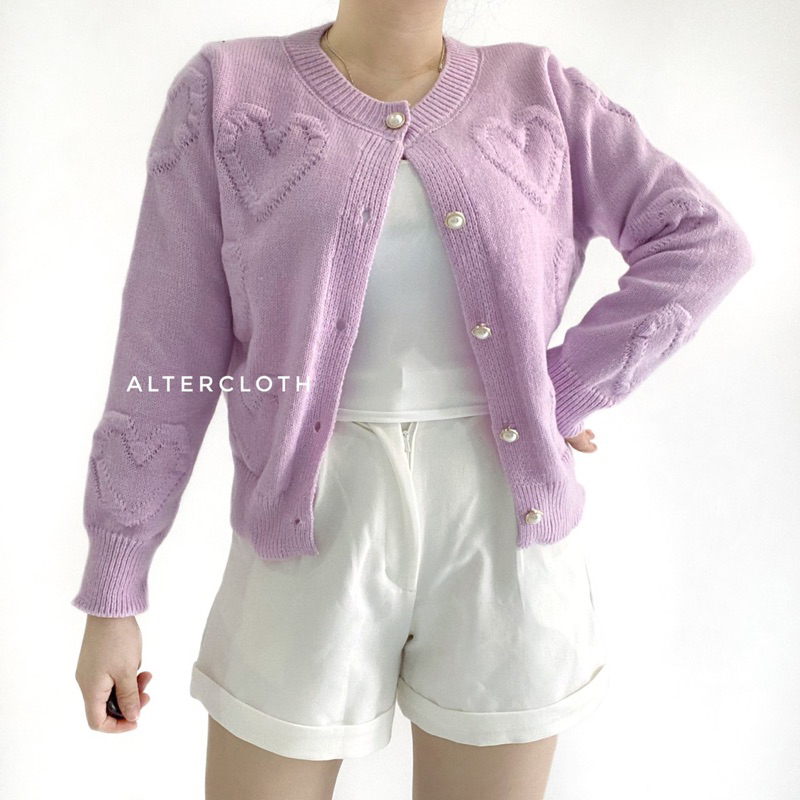 alter.cloth - HIMARI CARDI | Atasan Wanita Lengan Panjang Motif Polos Hati Love Plain Kardigan Korea Longsleeve Fashion