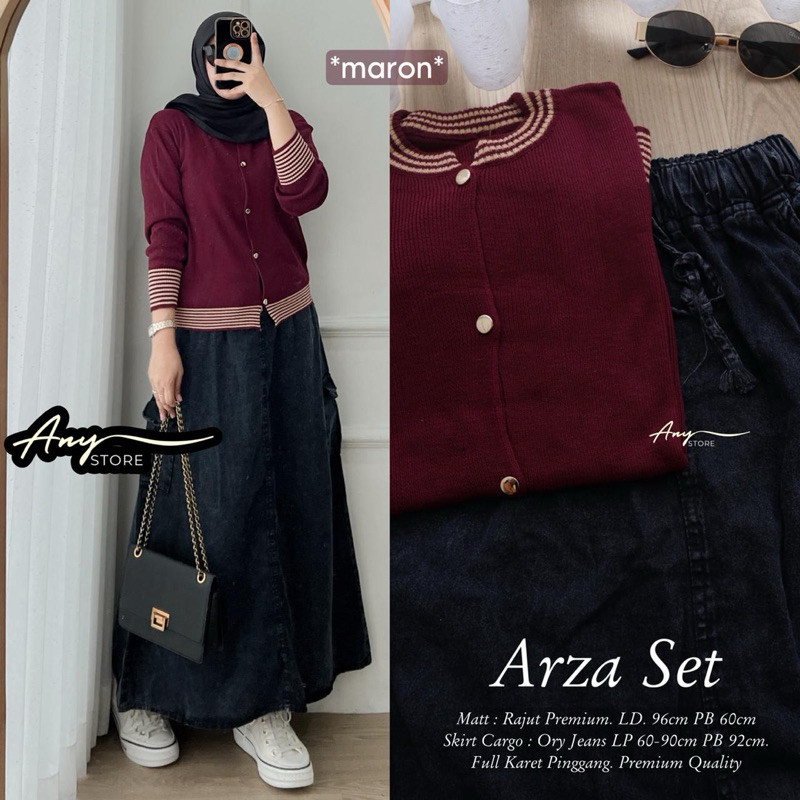 NEW SETELAN MUSLIM ARZA SET ROK JEANS ADEM SET RAJUT+ROK / SETELAN VIRAL PREMIUM MURAH ORIGINAL ANY