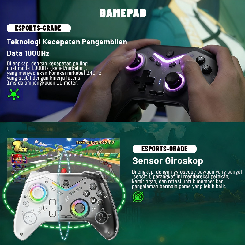 []Gamepad Wireless Bluetooth CM-619 Dengan lampu RGB Joystick Game Controller untuk N-Switch / Steam / IOS /Android /PC