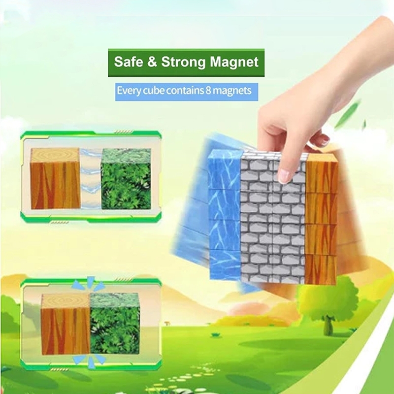 Magnetic Cube Building Blocks / Mainan Magnetik Edukasi / My World Minecraft Building Blocks