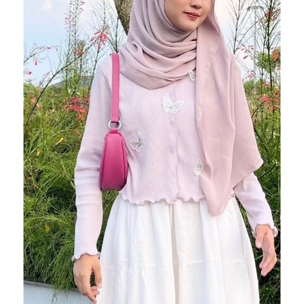 Fashion Lu Store Vallina Outfit - Cardigan Kupu Knit Butterfly Cardy Outer Wanita Remaja Matt Knit Premium Casual