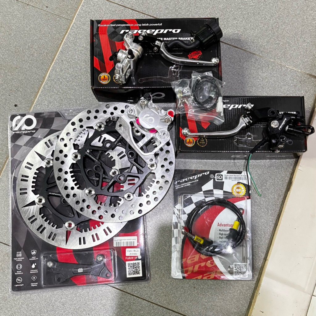 PAKET PENGEREMAN RACEPRO FULL SILVER V5 MASTER GT-1 KALIPER GPX-2P DISC SR1/SR2 VARIO 125 150 BEAT SCOOPY MIO KARBU GENI