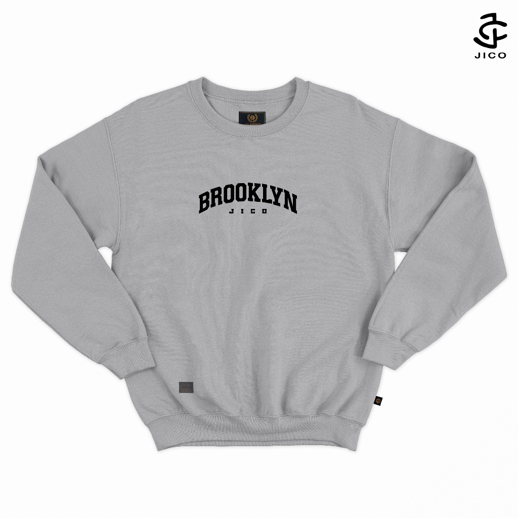 Fashion Lu Store JICO - Sweater Crewneck Sablon Brooklyn M - XXL Fleece Premium Warna Abu Misty