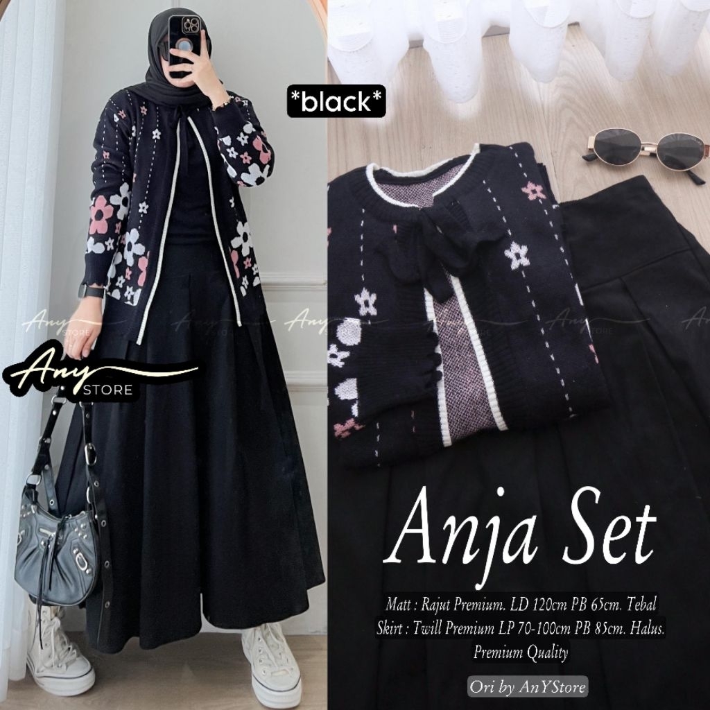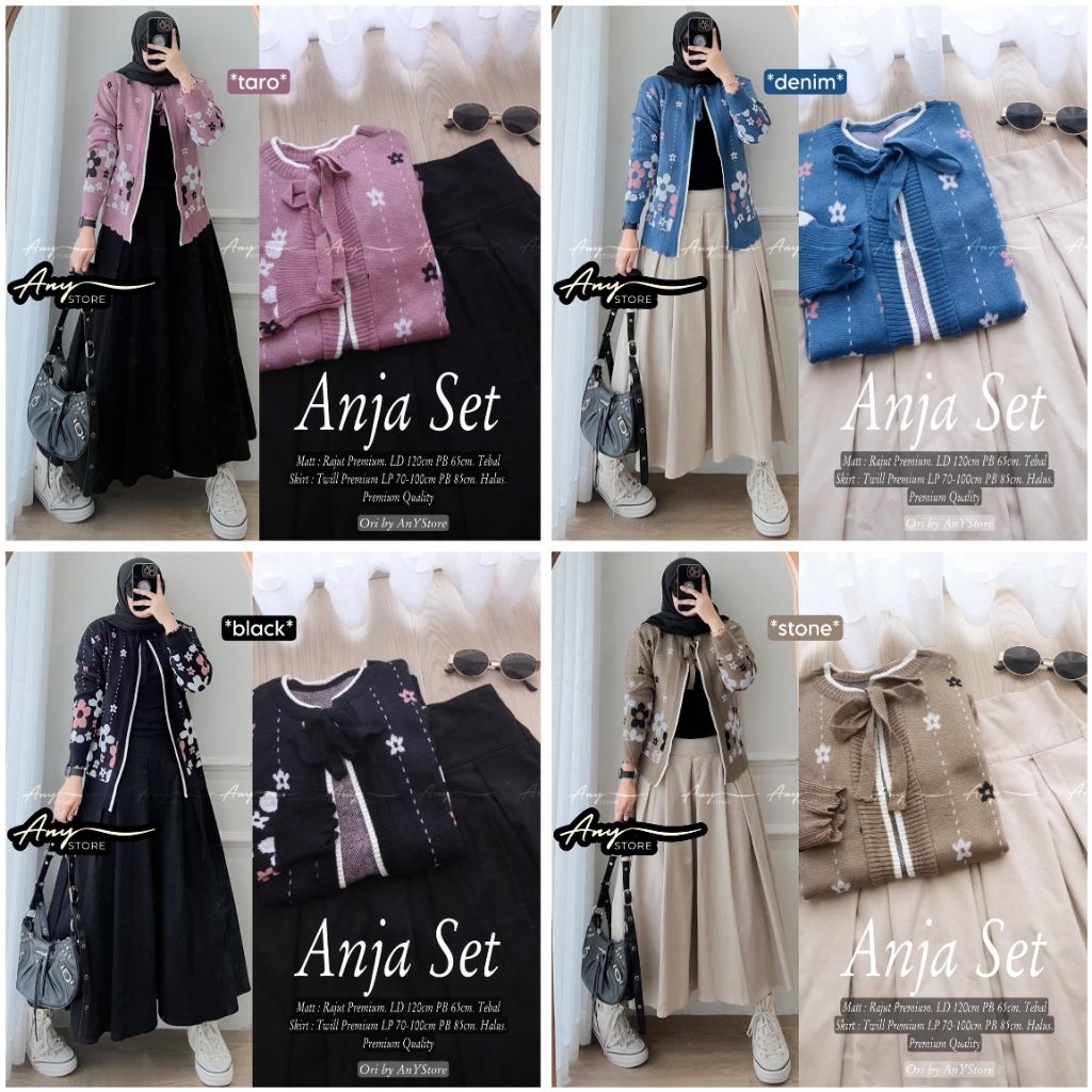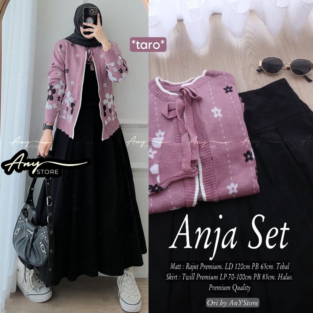 anja one set wanita kekinian by a.n.y store kardigan formal kerja rok twill premium rok plisket import one set rok panjang kardigan zara premium blazer zara polos outfit kantor casual wanita