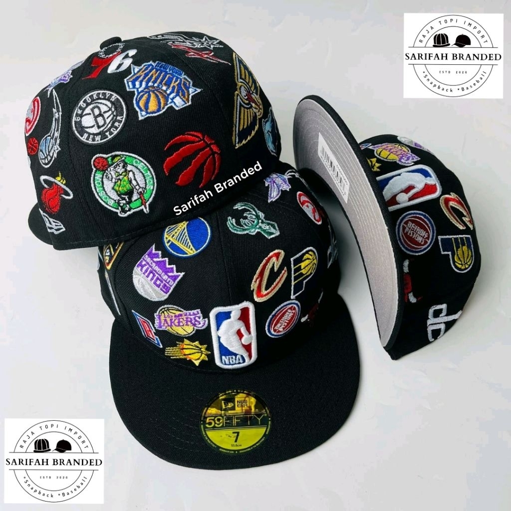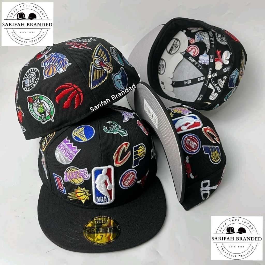 Topi Build Up Full Bordir NBA All Logo Super AA+ Import - Topi Fitted All Over Full Team Import - Topi Basket