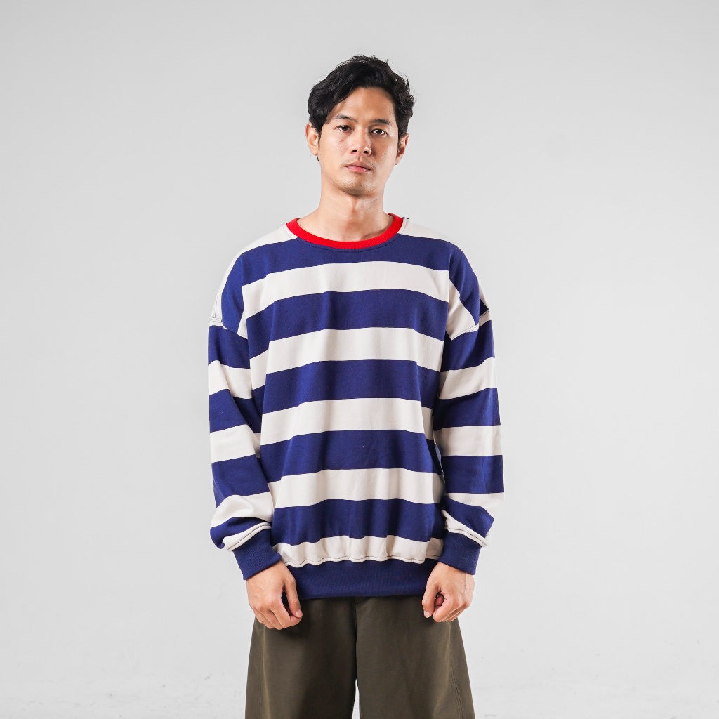 Fashion Lu Store House of Smith Sweater Crewneck Oversize Pria - Groove Oversize Crewneck Navy Red