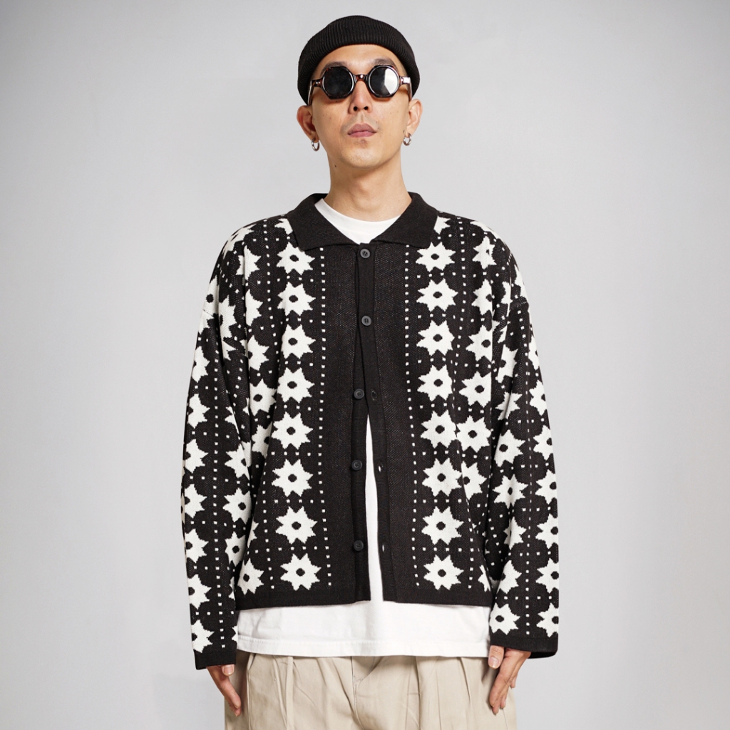 Fashion Lu Store BOWLER LOOSE KNIT CARDIGAN BLACK
