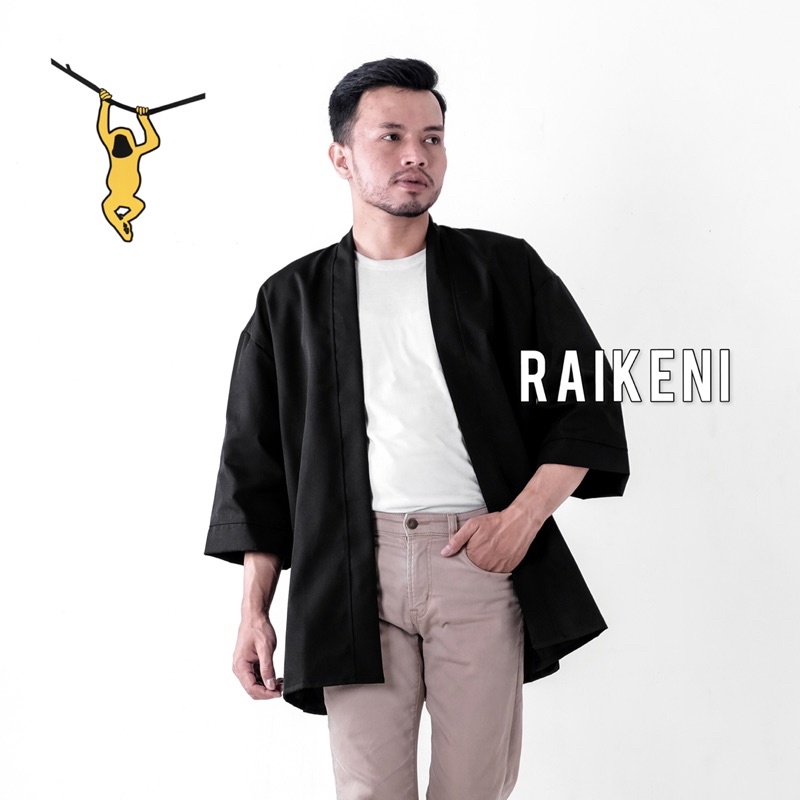 Fashion Lu Store RAIKENI Kimono UNO | Jaket Cardigan Jepang Hitam | Kimono Outerwear Unisex | Kardigan Pria