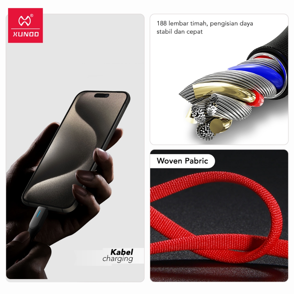 XUNDD Untuk 2.4A Iphone Lightning Kabel Fast Quick Charger USB TO Lighting data Cable LED Indikator Fast Charge / XDDC-0