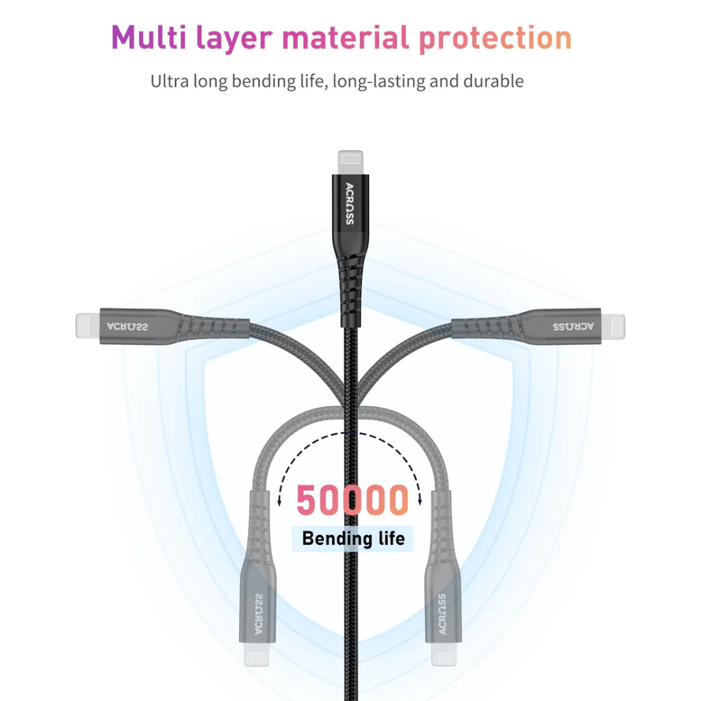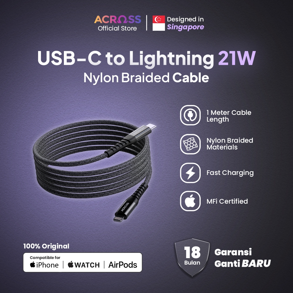 ACROSS Kabel Data Type C to Lightning 21W MFi Certified Charger for iPhone Fast Charging
