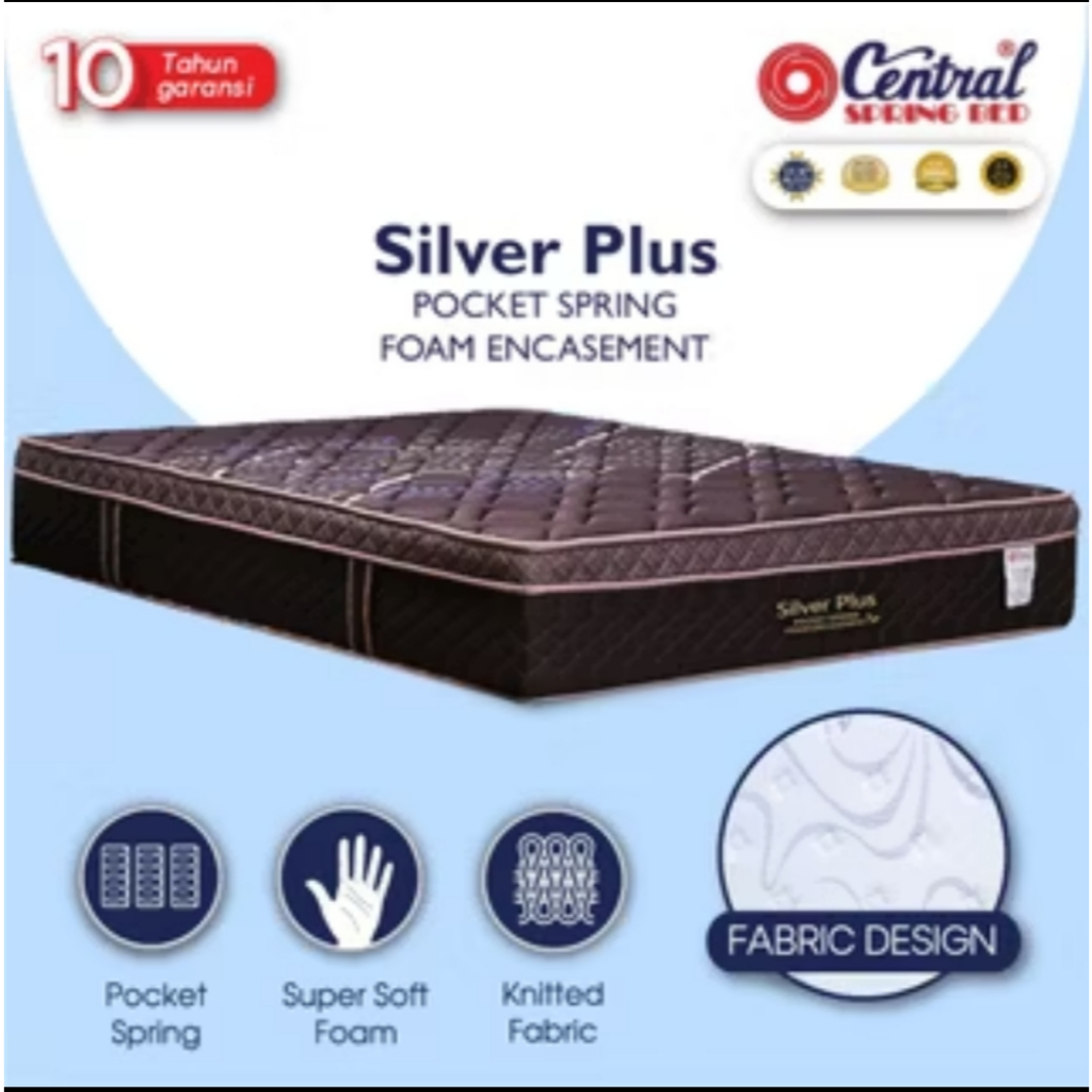 Central Kasur Springbed DELUXE PLUS - SILVER PLUS Pocket Springs (Encasement Foam) TANPA DP