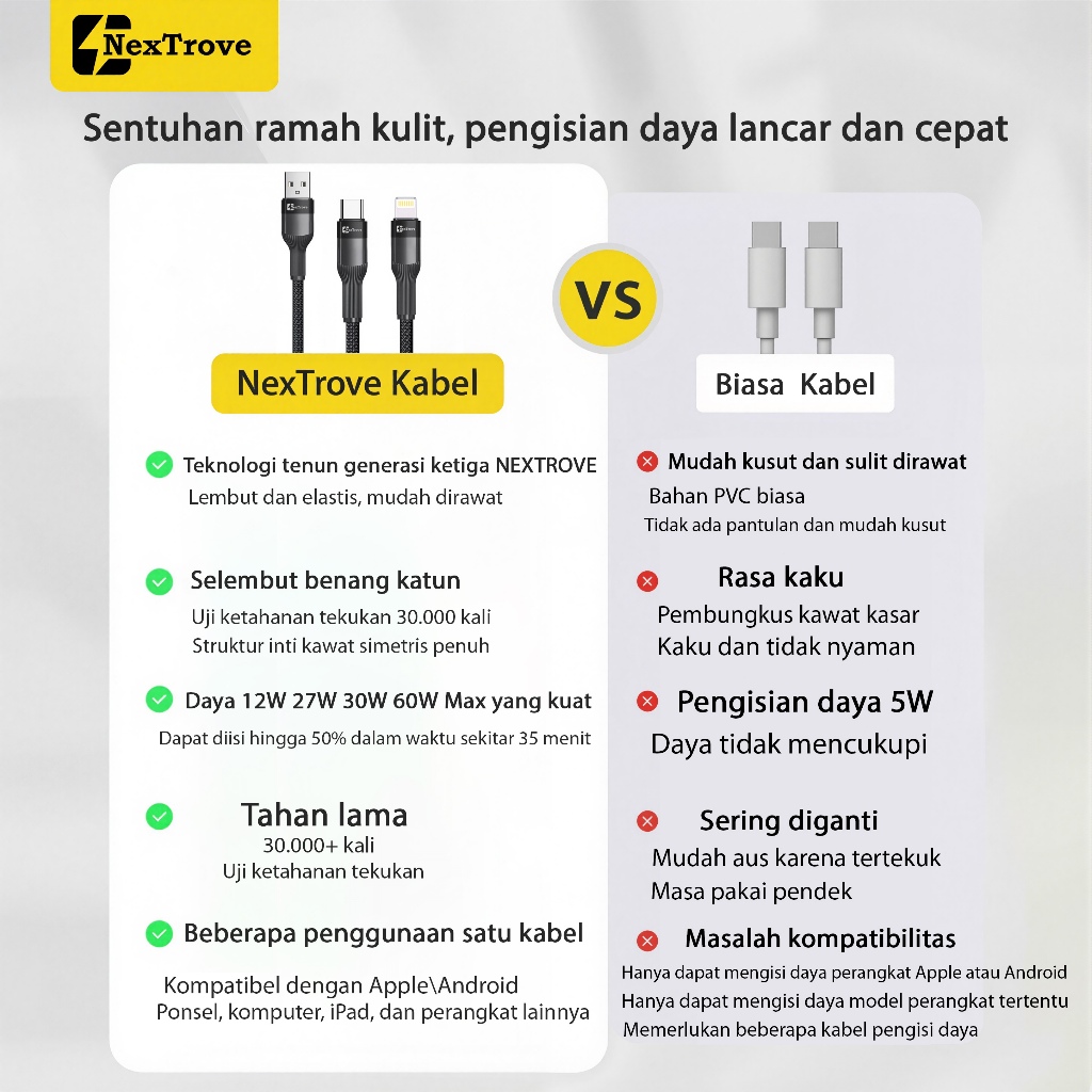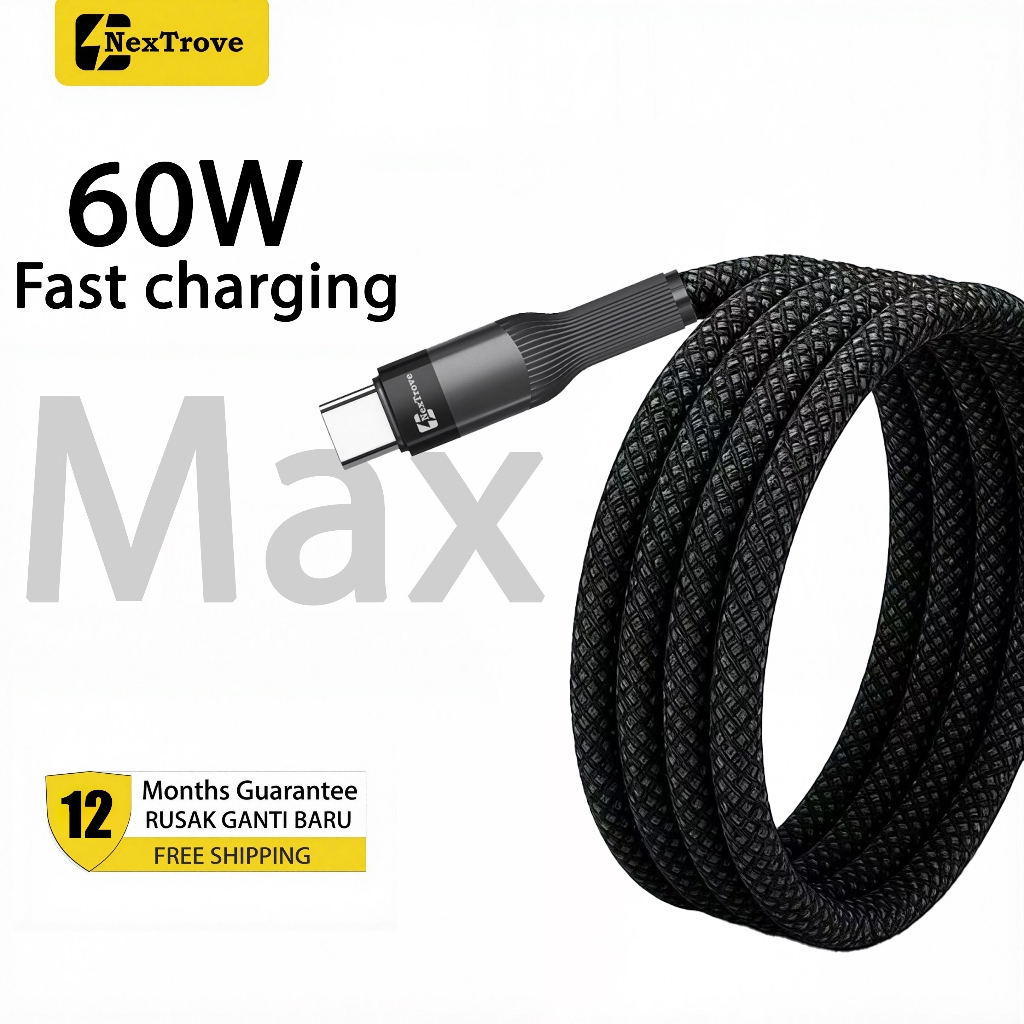 NexTrove Kabel Data 60W Tipe-C Lightning Kabel Pengisian Super Cepat Kabel Pengisian Flash 6A Kabel pengisian daya yang