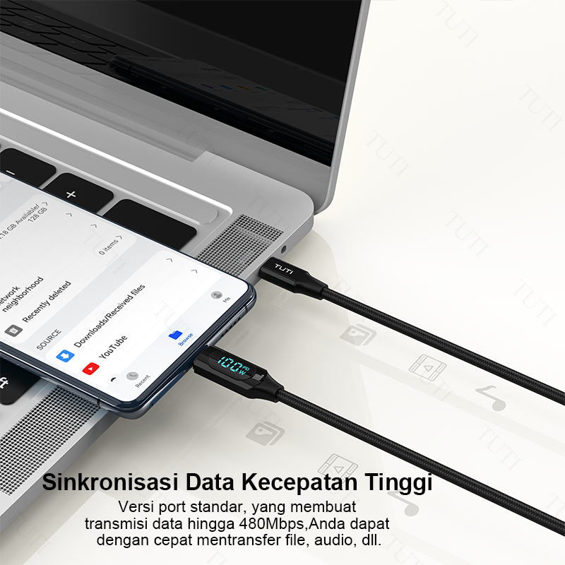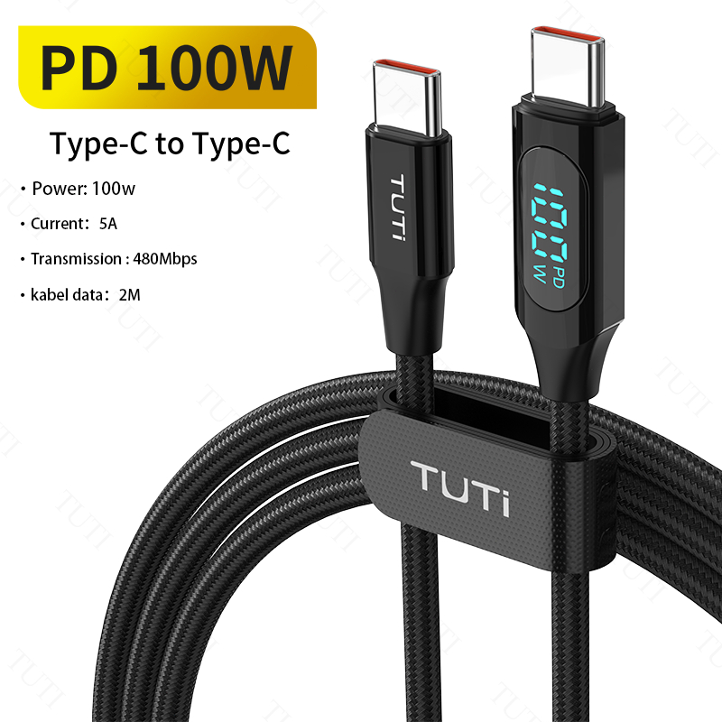 TUTI Kabel Data Type C 100W 5.0A Fast Charging Digital Display Data Cable Charger Type C 2M