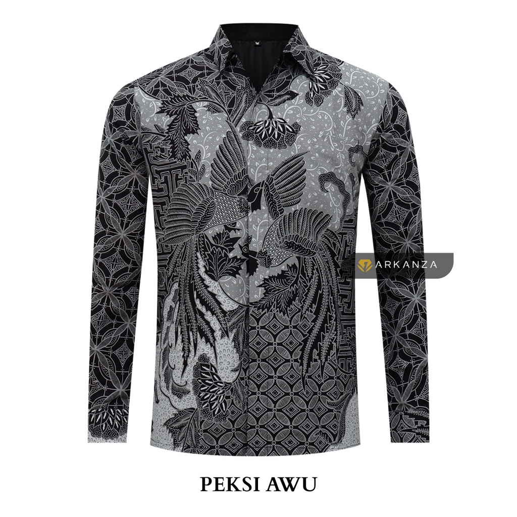 BATIK ARKANZA Motif PEKSI AWU Hem Atasan Kemeja Baju Batik Pria Cowok Laki Laki Slimfit Full Ls Furing Lengan Panjang