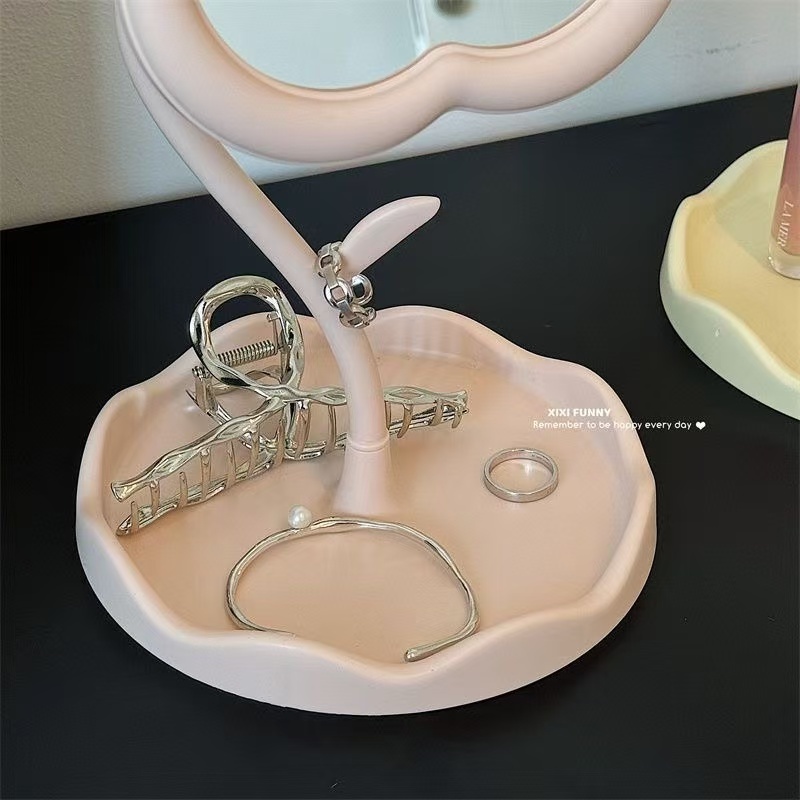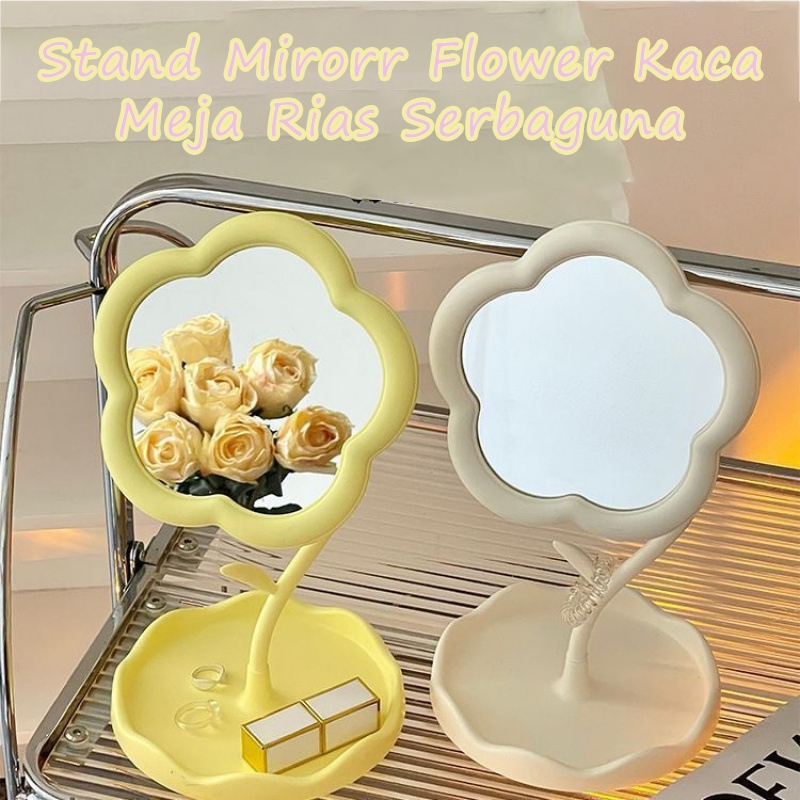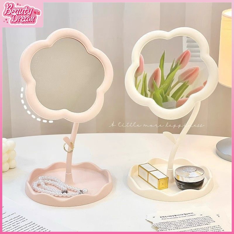 BEAUTY Cermin Bunga Standing Mirror Makeup Rotating Cermin Aesthetic Cermin Aesthetic Stand Mirorr Flower Kaca Meja Rias