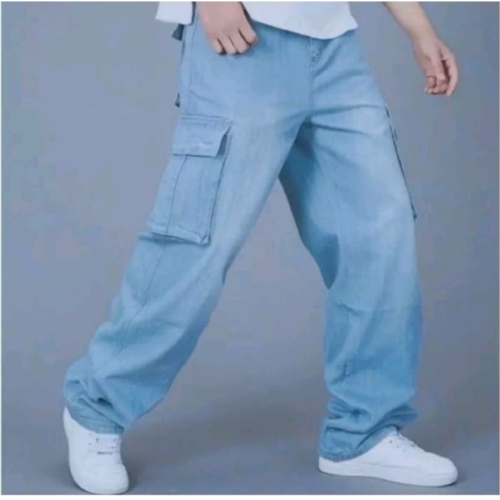 CELANA JEANS PRIA Celana Jeans Cargo Pria Loose Reguler / Celana Baggy Jeans Gombrong Celana Cargo Panjang Pria