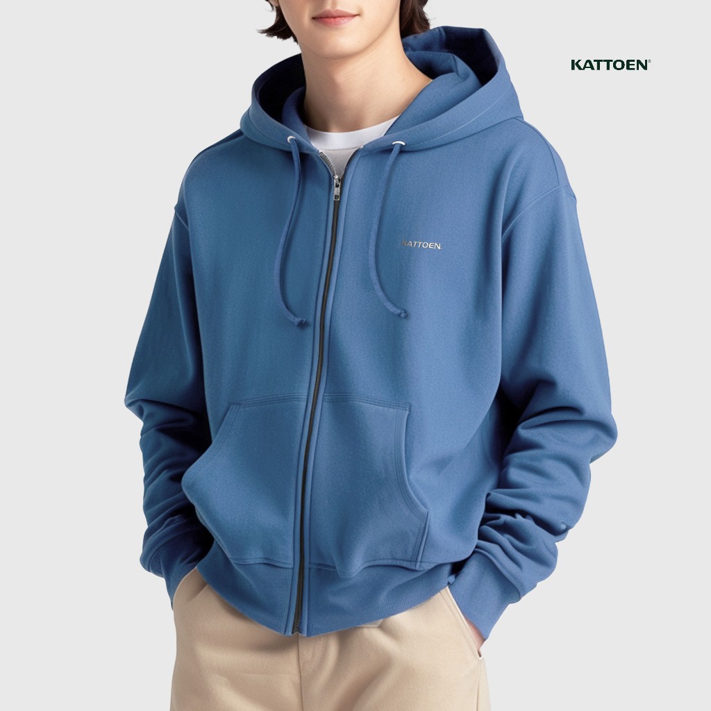 Fashion Lu Store Kattoen Jaket Zipper Hoodie Polos - Aegean 290 Gsm
