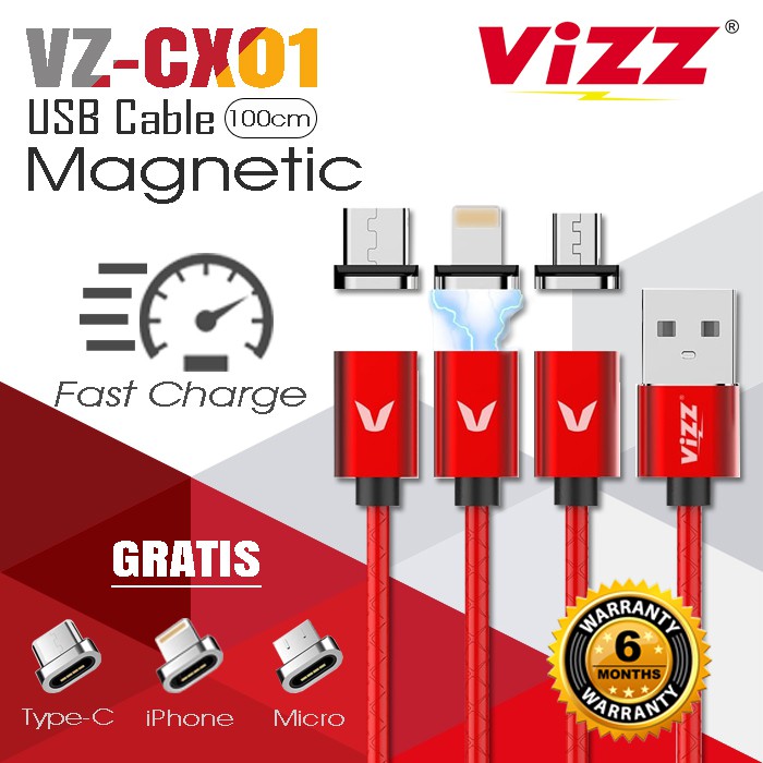 VIZZ CABLE VZCX01 KABEL DATA MAGNETIC 3 IN 1 MICRO IOSss TYPE C