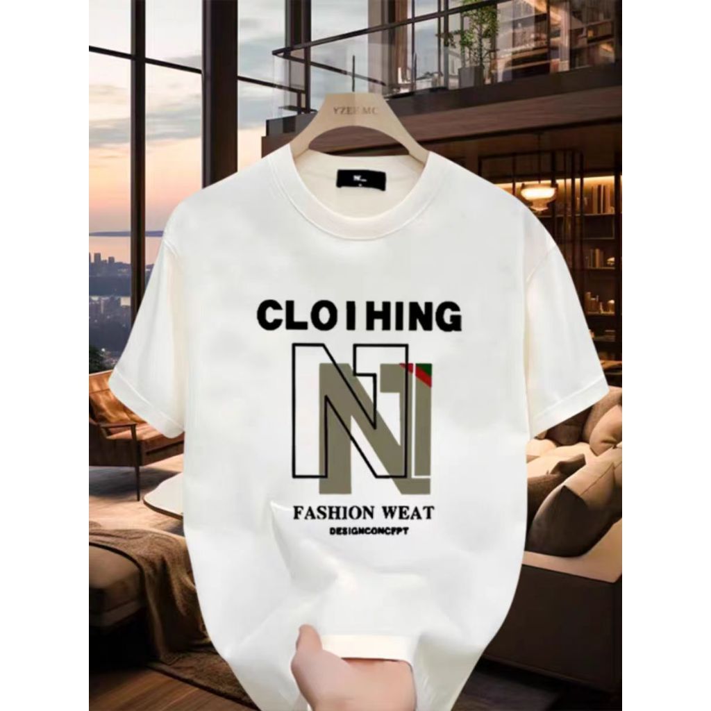 【Distro Original 100 PERSEN】 Kaos katun pria pasang Amerika kaos katun leher bulat atas dicetak fashion kemeja longgar musim p