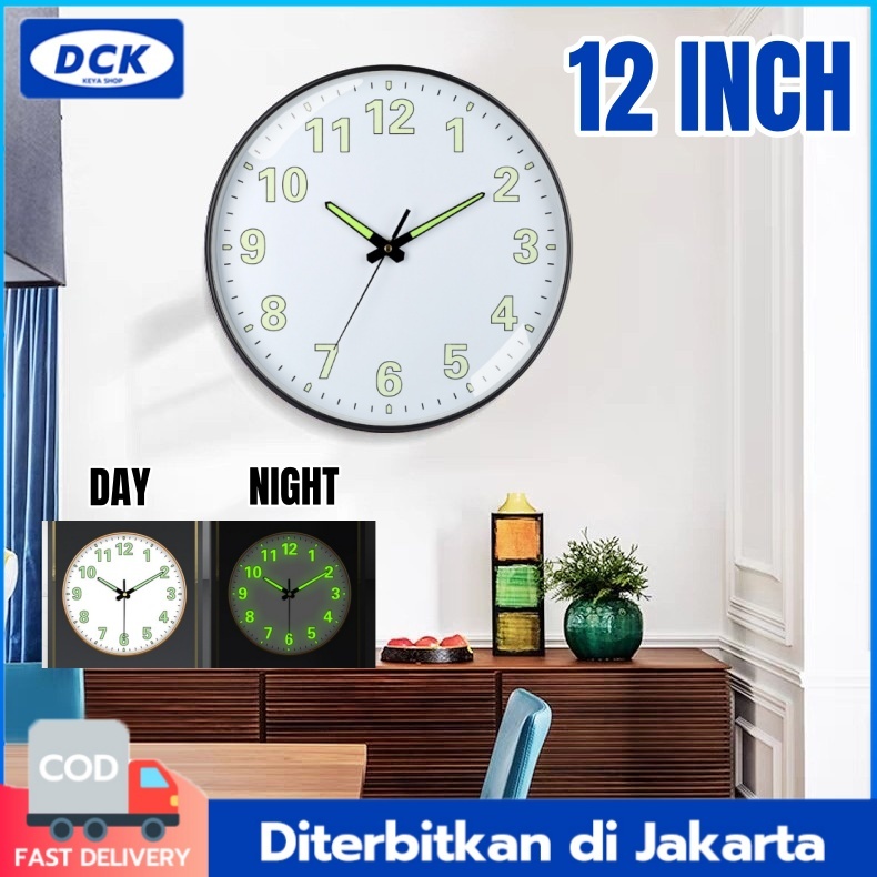【Kemasan tebal】Jam Dinding Bulat Quartz Glow in The Dark Nyala Saat Malam Gelap 12INCH/Bercahaya Luminous Glow in The Da