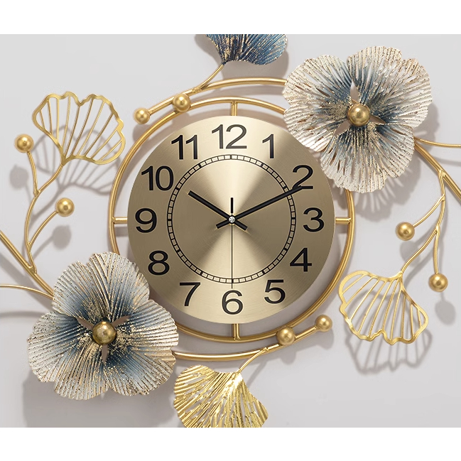 Jam Dinding Metal Ginkgo Luxury Dekorasi Rumah Jam Dinding Luxury Home Decor Jam Dinding 83*48cm