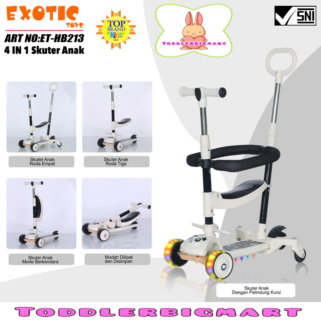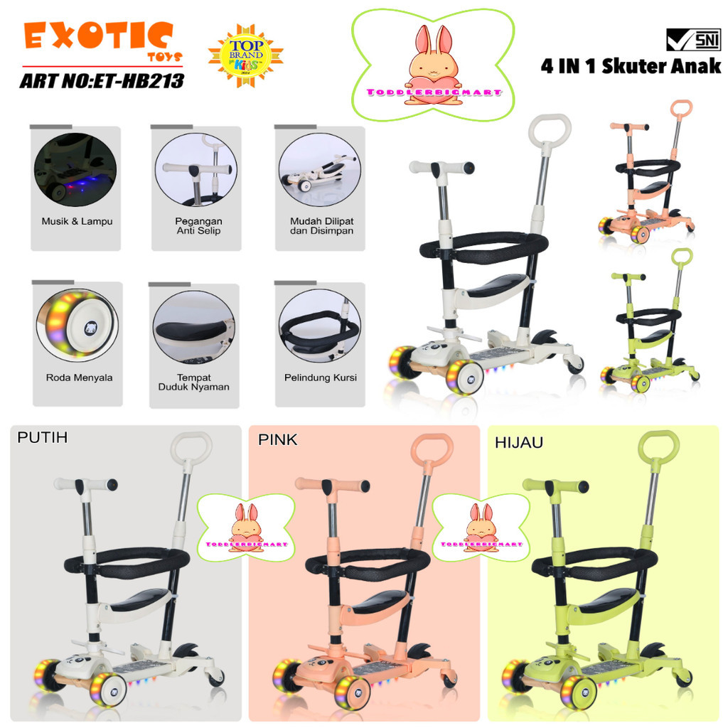 MAINAN ANAK SCOOTER DUDUK BERDIRI EXOTIC HB 213 SCOTER STOLLER 4IN1 ADA LAMPU MUSIK BISA LIPAT KERETA DORONG