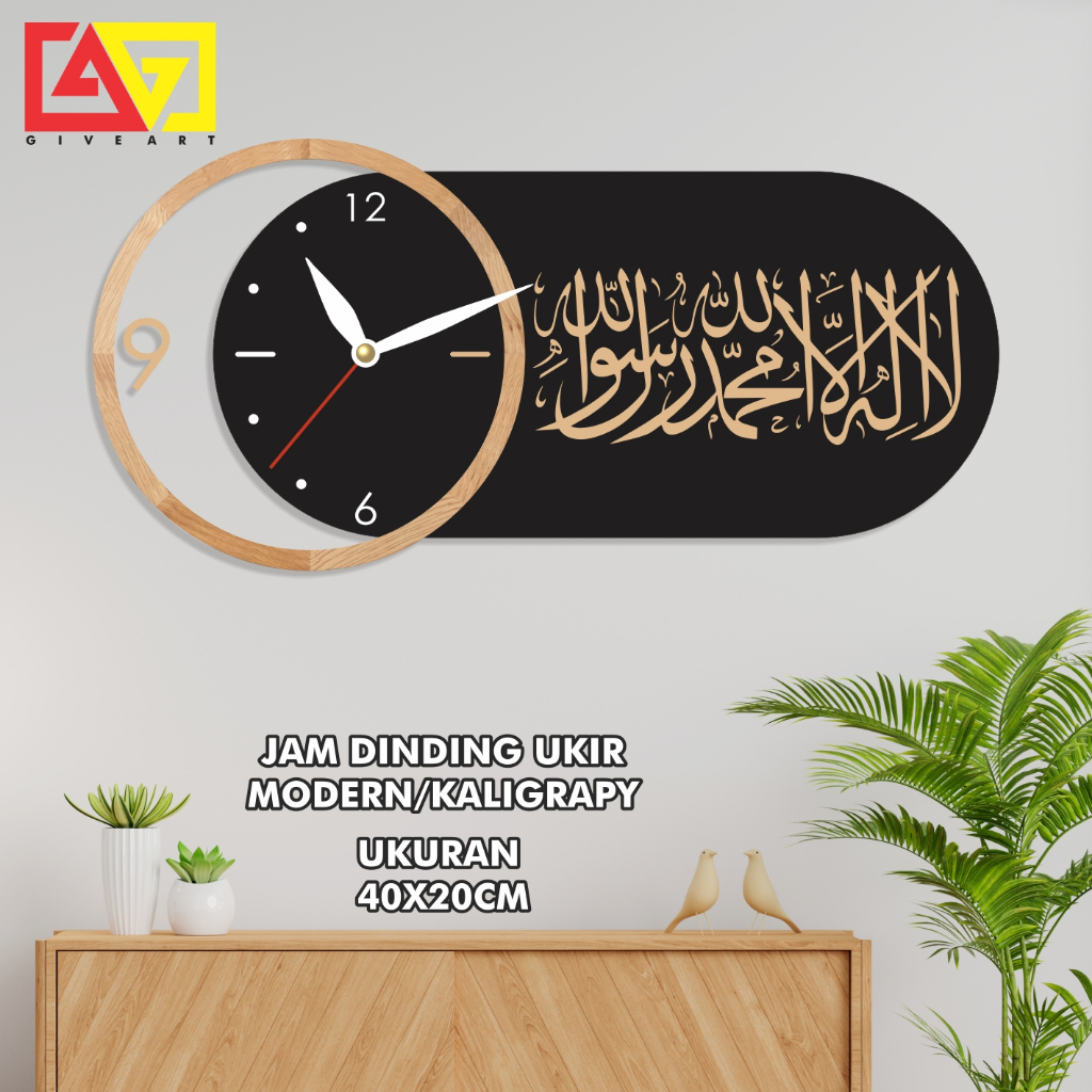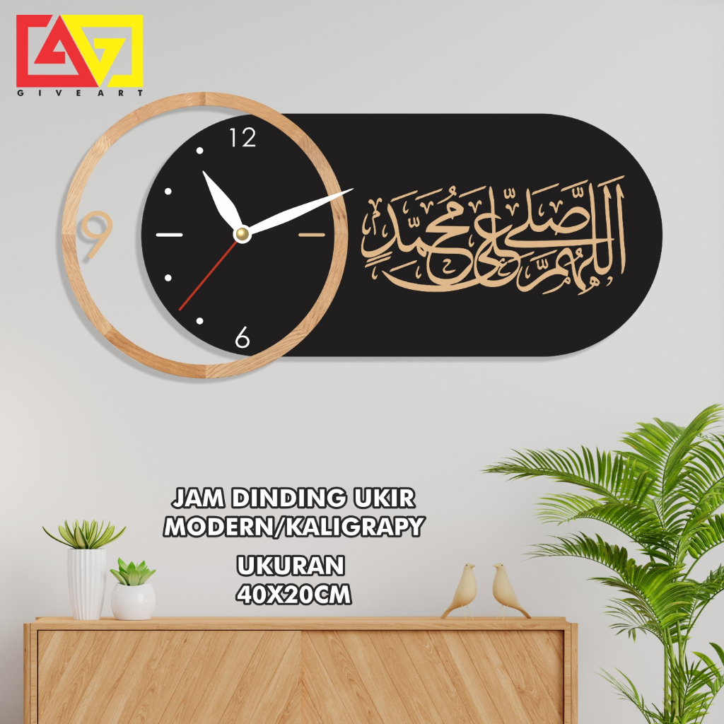 JAM DINDING MODERN MINIMALIS KALIGRAFI SHOLAWAT DOA TAUHID WALL DECOR RUANG TAMU RUANG KAMAR GA35