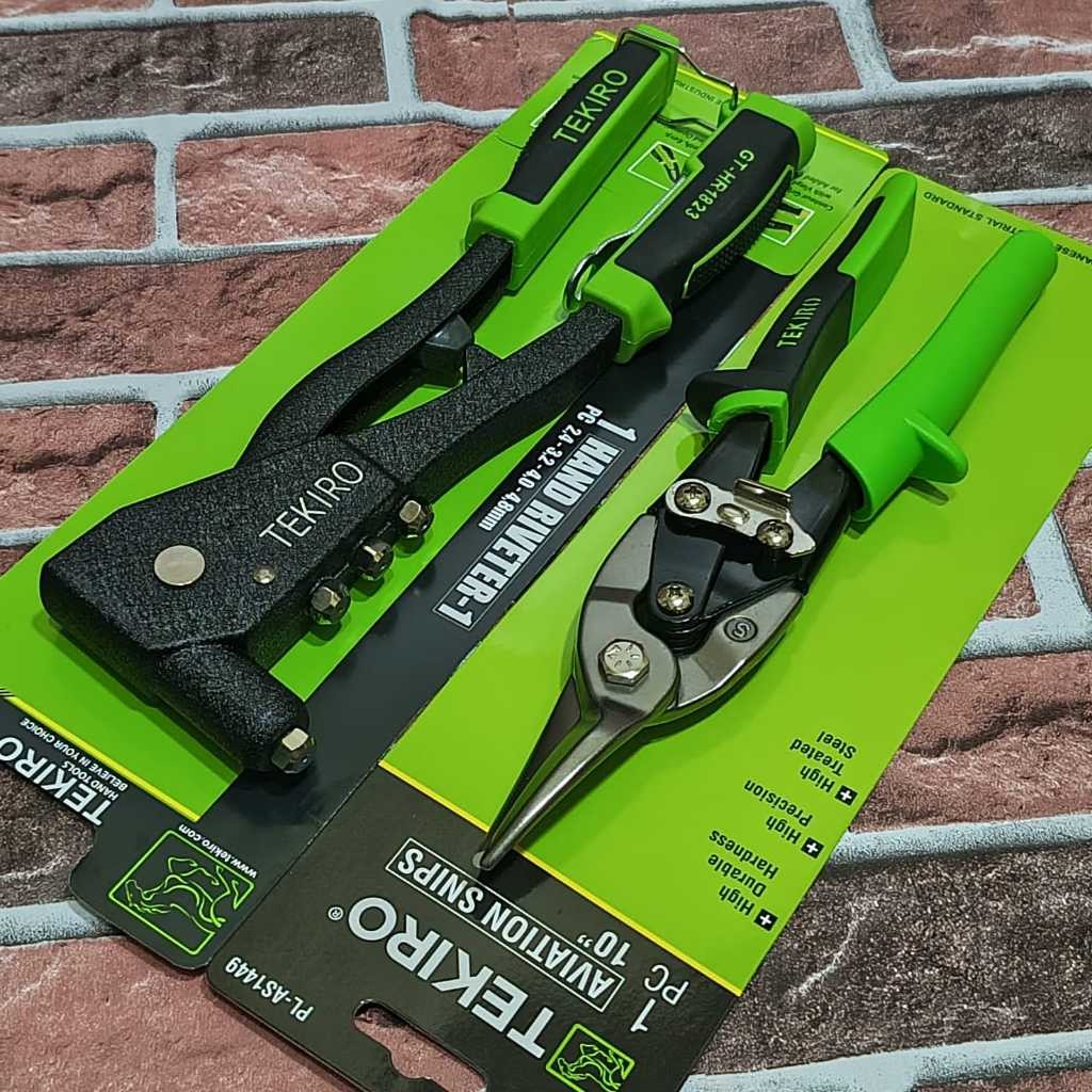 PAKET TANG RIVET 2 PCS / Tekiro Paket Tang Rivet & Gunting Seng Baja Ringan 10" Gunting Holo / tang