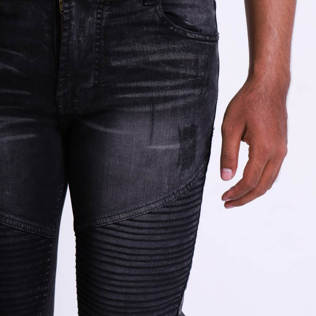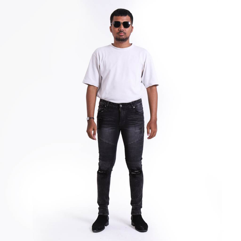 Weird Jeans - Biker Jeans Charcoal Black - Celana Jeans Panjang Pria Slimfit Ripped Jeans Stretch