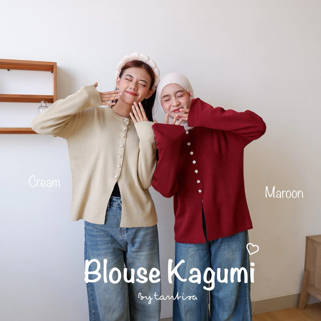 Cardigan Wanita Blouse Knit Kagumi O-neck Rajut Series Premium Cardigan Korean Style Motif Polos Lengan Panjang Murah