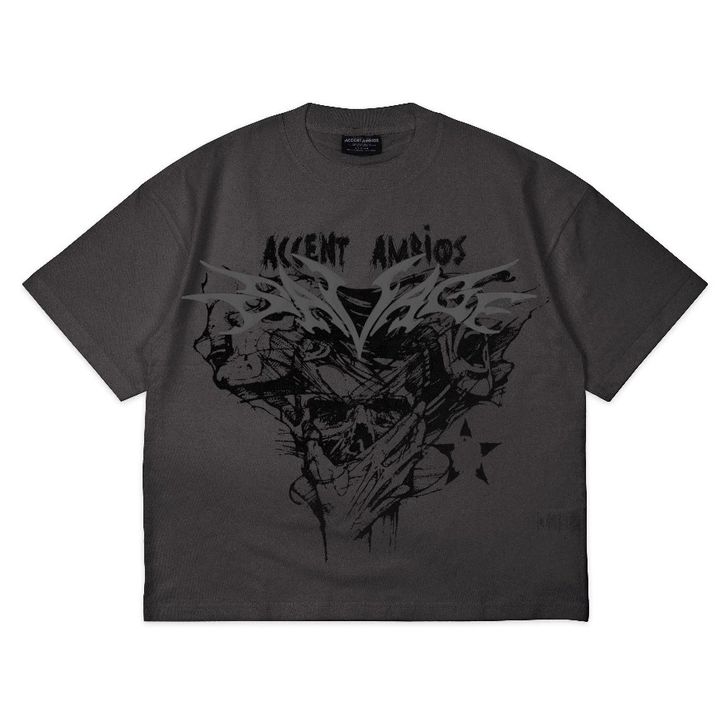 Kaos Boxy Oversized Savage Abu Tua Katun Combed 20s Kaos Pria Lengan Pendek Atasan Pria Casual Kaos Oversize