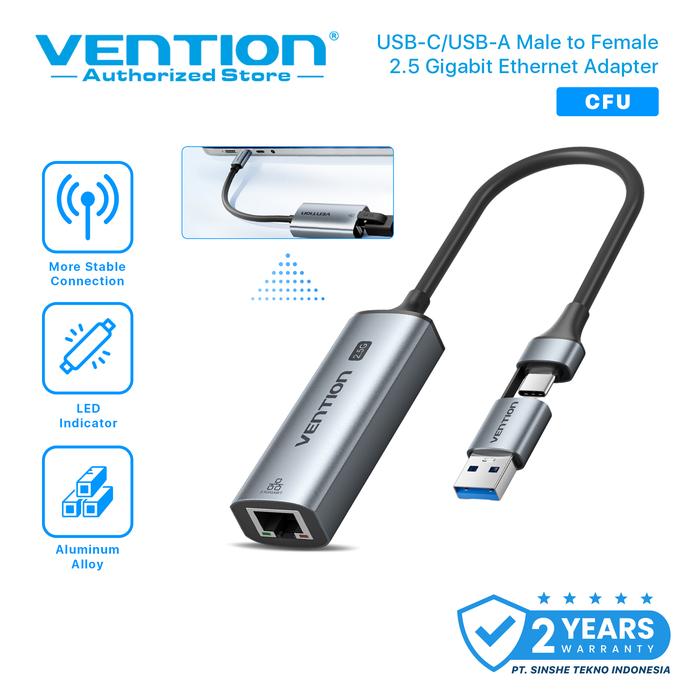 VENTION 2IN1 USB-C USB-A TO 2.5G ETHERNET ADAPTER LAN RJ45 OTG NAS PC LAPTOP - CFU